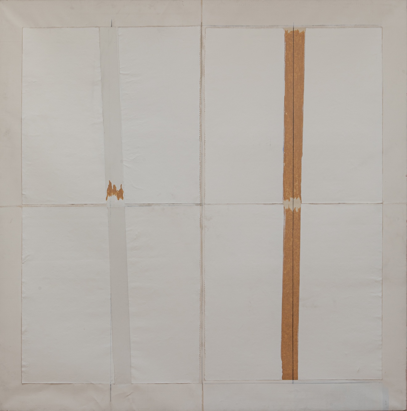 L’année 1963 marque une rupture brutale. À la mort accidentelle de sa fille répond une période d’isolement durant laquelle Degottex cesse toute production. Lorsqu’il reprend son activité artistique, c’est pour remettre en question les fondements mêmes de sa pratique. Il abandonne les techniques traditionnelles de la peinture et étend ses recherches aux matériaux : il colle, plie, déchire, brûle, gratte, utilise des matériaux de récupération. Cette période donne naissance aux séries ‘Suites-médias’, ‘Papiers pleins’, ‘Plis’, ‘Reports’… Le matériau, le support et le processus de création deviennent œuvres en tant que tels.