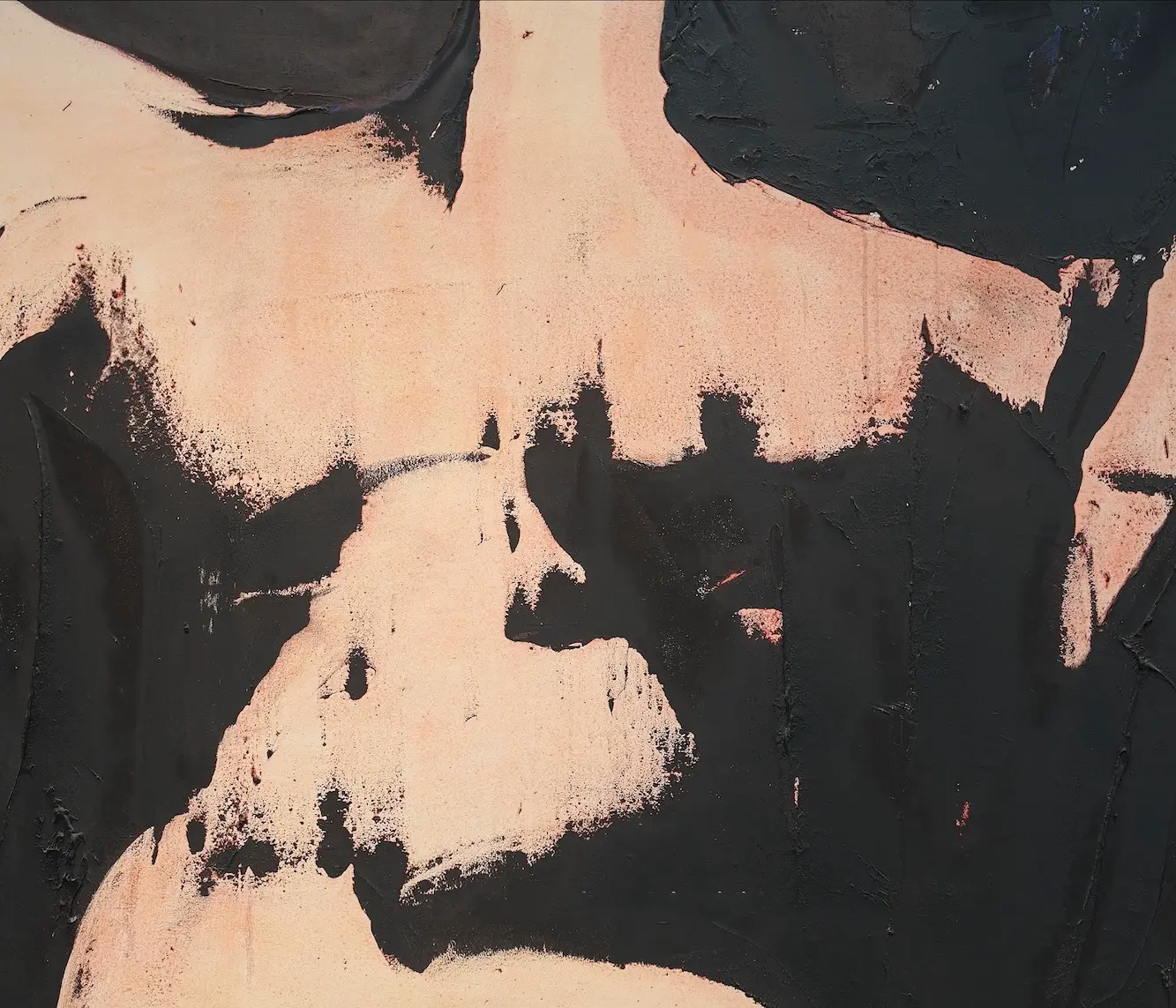 Plus que l’élégance formelle du geste, c’est son authenticité que Judit Reigl recherche, une authenticité qui la mène à une figuration imprévue, faite de torses anthropomorphes – principalement masculins – peints avec force dans une apesanteur située entre l’envol et la chute et occupant toute la surface de ses toiles (Homme, 1966-1972 et Drap-Décodage, 1973). Ce travail culmine avec la série abstraite des Déroulements (1973-1985) où l’artiste approfondit une écriture automatique faite de tracés colorés émergeant par transparence au revers de la toile. Dans ses ultimes séries abstraites des années 1980-1988 réalisées sur le même principe, des rectangles monumentaux apparaissent progressivement, évoquant des « portes » où se glissent des silhouettes humaines (Face à…, 1988-1990). Dans la suite de ces apparitions figuratives, les corps nus se multiplient : ils apparaissent seuls ou en groupes, de face ou en lévitation, mais toujours en silhouette sur fond uni, réduits à l’essentiel de leur être. Ce retour à la figure témoigne d’une obsession constante chez l’artiste : celle de faire du corps – agissant ou représenté – le sujet même sa peinture.