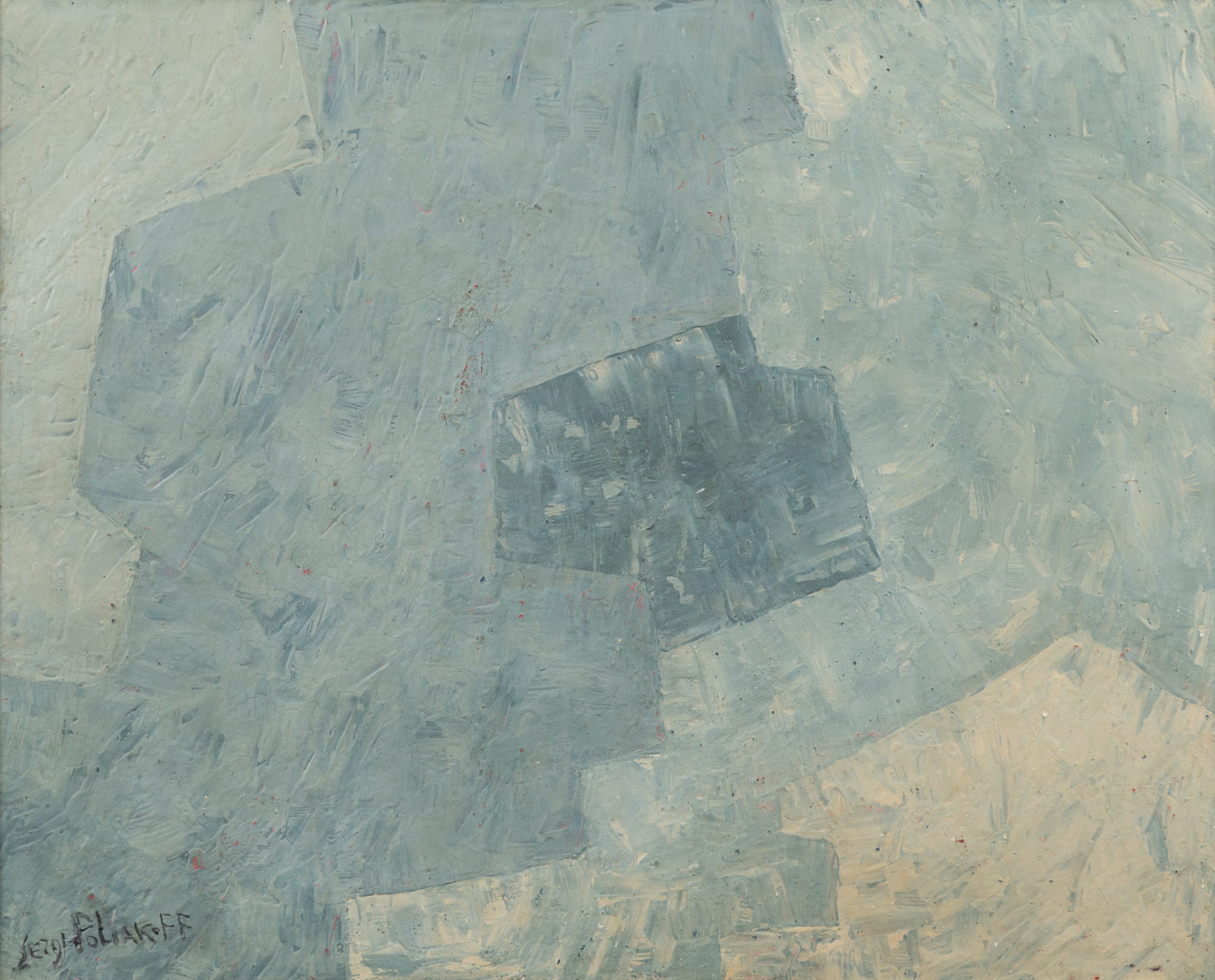 In 1937, he becomes close to the Delaunay painters whose theoretical discussions greatly assist his development. Two years later, he exhibits his first abstract painting and compositions in Paris. Noted by the painter Kandinsky, who says, “I bet on Poliakoff for the future.” He then participates in several salons and organizes his first exhibition of abstract paintings in 1945. The artist subsequently receives the Kandinsky Prize in 1947.